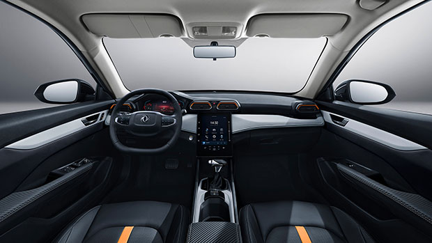 Dongfeng SHINE GS je dostupný v dvoch farbách – bielej a čiernej, ktoré pútajú výraznými oranžovými doplnkami na prednej maske a zadnom nárazníku.