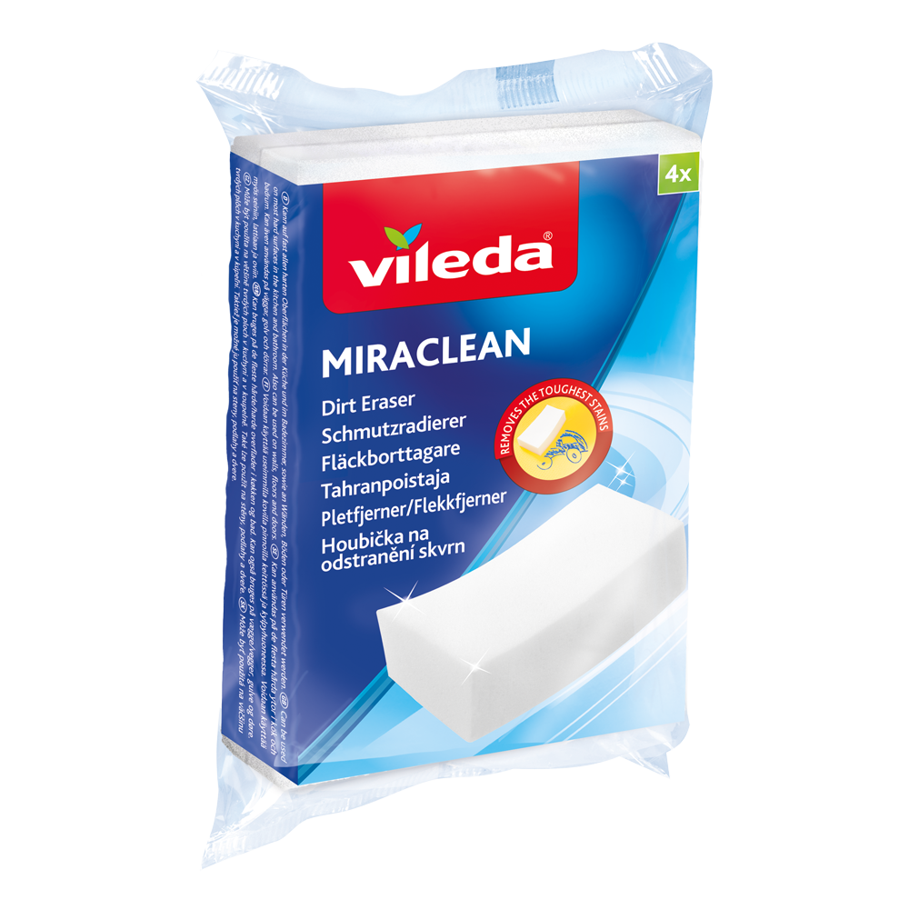 Zázračná hubka pre ľahké odstraňovanie škvŕn z väčšiny tvrdých povrchov iba vodou. Nie je treba použiť chemické prostriedky. Táto hubka Vileda ľahko odstraňuje škvrny od čaju, kávy, pera alebo vodný kameň. Môže byť použitá na väčšine tvrdých plôch v kuchyni a v kúpeľni. Možno ju použiť tiež na steny. Je zložená zo 100% živice a čistí iba vodou.