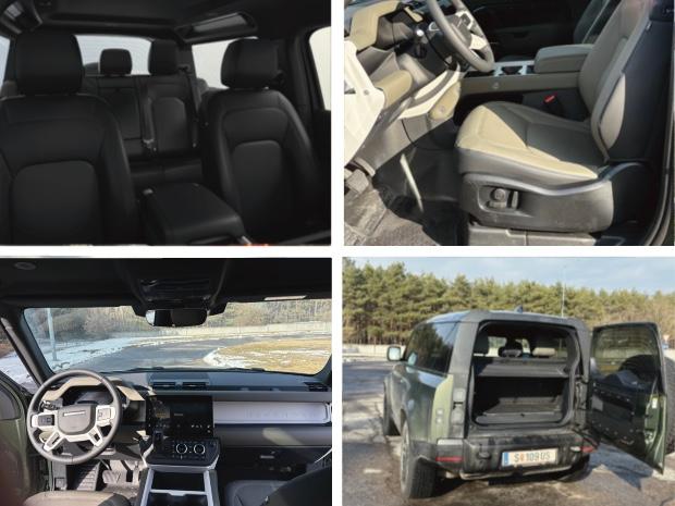 Pohon všetkých kolies, terénne jazdné režimy a krátky rázvor robia z jazdy v náročnom teréne prekvapivo jednoduchú záležitosť. Auto sa dokáže prispôsobiť blatu, piesku či kamenistým cestám a vodič má často pocit, že limity vozidla sú oveľa ďalej než jeho vlastné. Práve tu sa najviac prejavuje DNA auta, ktoré nadväzuje na legendárne expedície Camel Trophy.Samozrejme, trojdverová verzia prináša aj určité kompromisy. Zadné sedadlá ponúkajú menej priestoru a batožinový priestor je menší než pri väčších verziách Defendera.