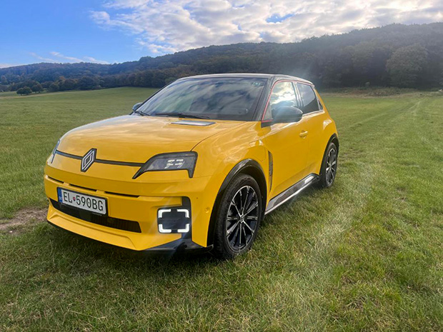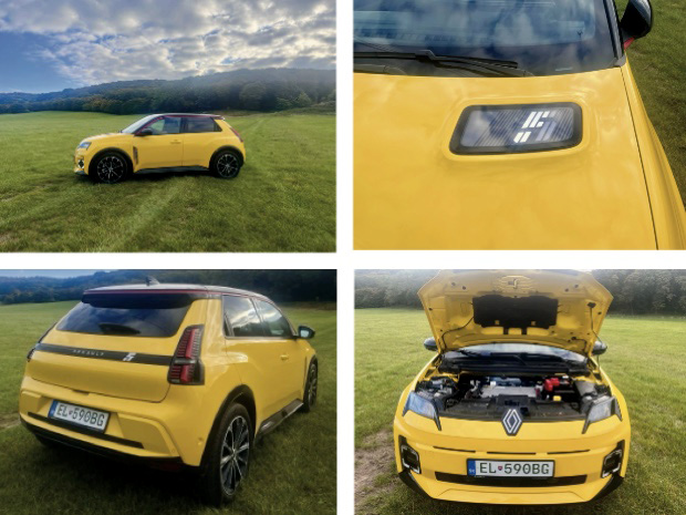Z tých všetkých vecí ma najviac zaujala replika výduchu v prednej kapote, ktorá odkazuje na vrcholový model R5 Turbo. Aj keď je posunutá pod čelné okno a na stranu vodiča (pôvodne bola v strede), stále je to funkčný doplnok. Okrem toho, že v nej svieti „päťka“, táto zároveň indikuje stav nabitia batérie. Mimochodom, aby sa nikomu nemálilo, tých číslic je na aute hneď niekoľko. Na karosérii, 18-palcových diskoch a aj v interiéri. Dokonca aj logo je v retro dizajne. A, aby sme nezabudli na pôvod auta, je to malá francúzska vlajka v predných reflektoroch.